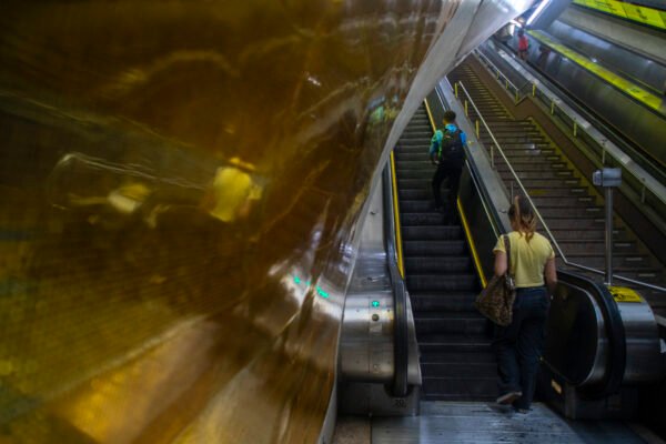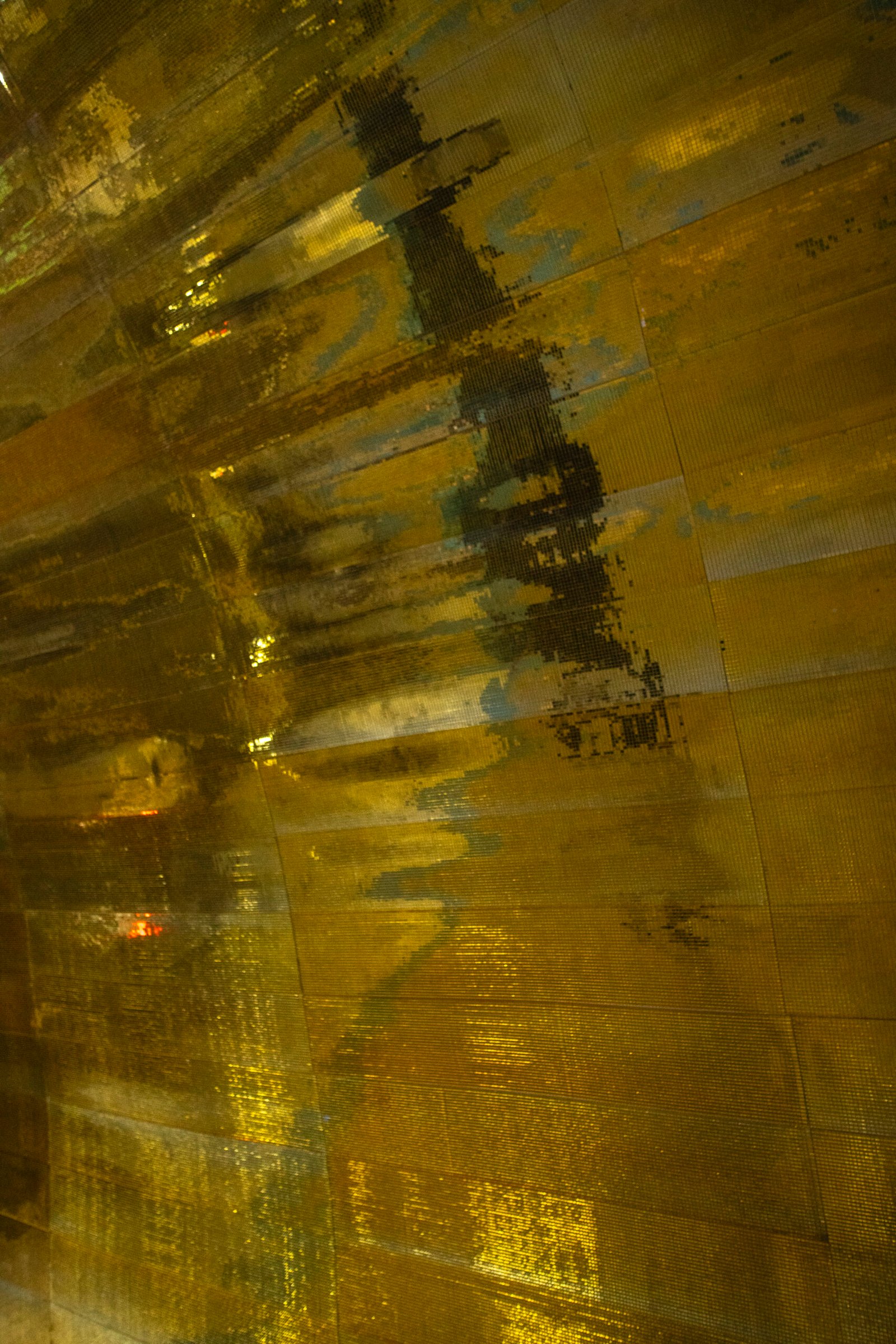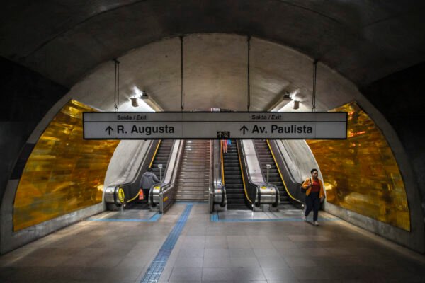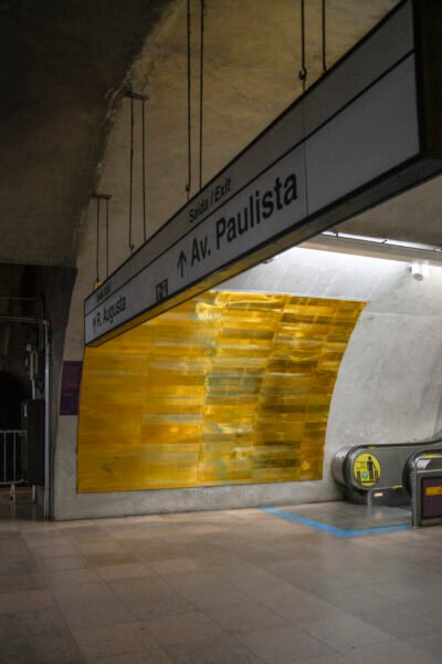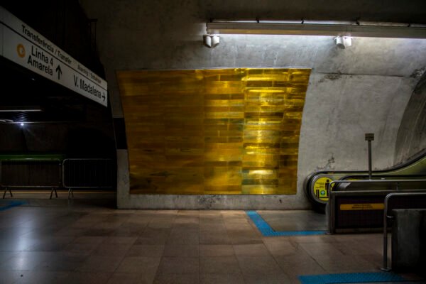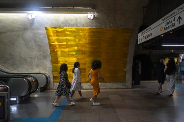 No túnel de interligação da estação Consolação, as superfícies espelhadas captam o movimento dos corpos e a luz artificial do subterrâneo. A arte interfere na lógica da mobilidade, provocando, pelo espanto, uma suspensão de nosso automatismo diário. A paisagem cinza do metrô se transforma em um dispositivo de reverberação — estética, política e sensorial.